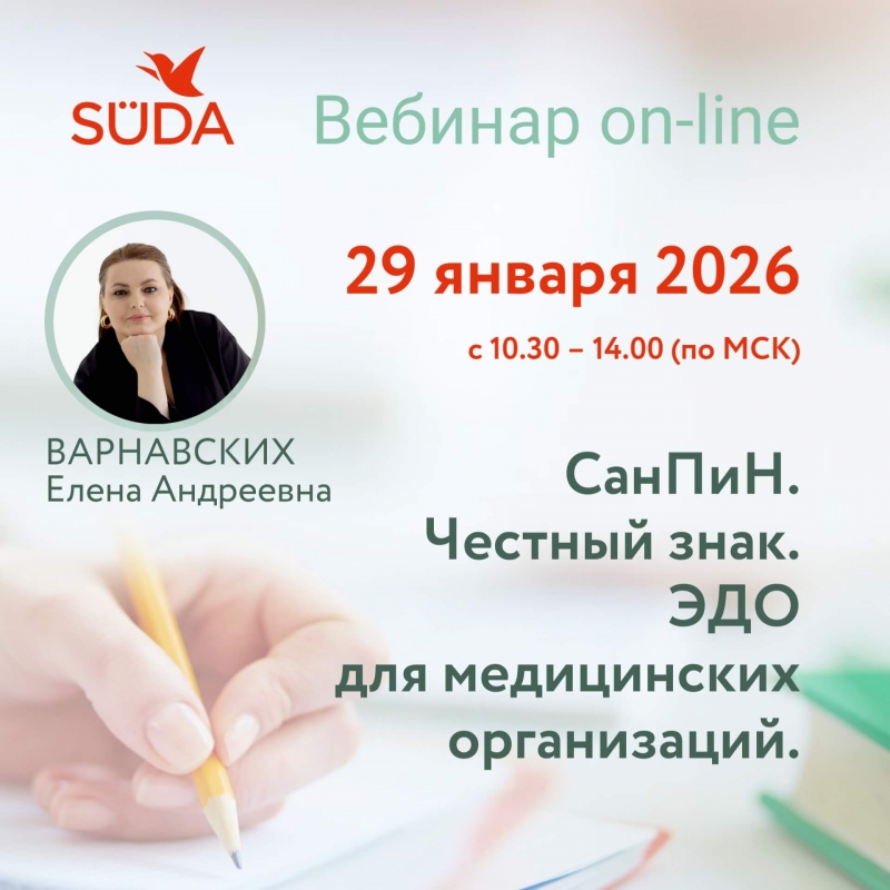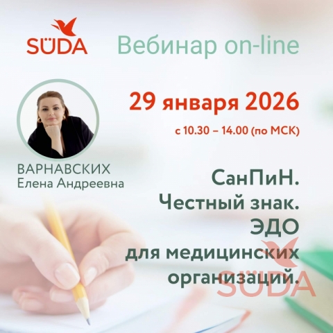 Приглашаем на on-line вебинар по теме: СанПиН. Честный знак. ЭДО для медицинских организаций, который состоится 29 января 2026 г. с 10.30 – 14.00 (по московскому времени).